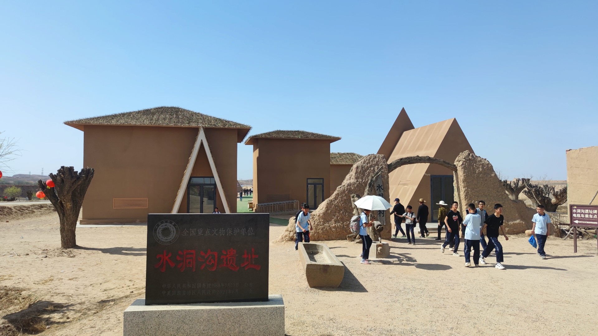 第一天我們抵達(dá)寧夏后,我們首先參觀了連世界考古學(xué)家都非常向往的四萬年前的水洞溝,跟隨講解員步伐聆聽三萬年前人類在此繁衍生息的故事,然后抵達(dá)碼頭后乘坐電瓶船,游蕩在湖水之間,上岸后乘坐駱駝和騾子車,前往機(jī)關(guān)重重的藏兵洞。